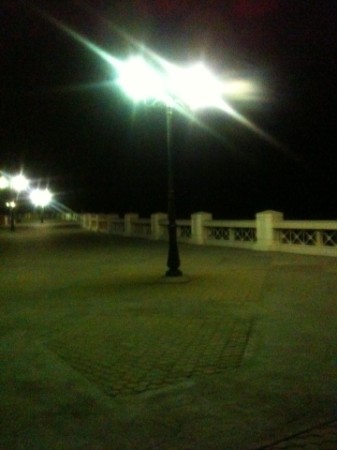 Vielleicht geht deswegen niemand ins Meer baden. Es ist jedenfalls verboten an der Corniche. Schilder! Im Dunkeln halten sich aber ein paar Jungens nicht daran. Komplett angezogen versteht sich. Obwohl ein Polizeiwagen schön langsam den Asphaltweg entlang rollt.