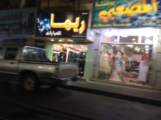 Im Taxi - nach unserer Ankunft gleich ein wenig Erkundung -, startet eine Beratung mit dem Fahrer über Restaurants, oder Eßplätze zu denen wir hingehen könnten. In den einfachen kann man nur mitnehmen, kein Platz wo Frauen sich setzen könnten. Sehr schade. Denn es gibt durch die Glasfronten viel zu sehen. Hier wird emsigst eingekauft. In kleinen Geschäften.
