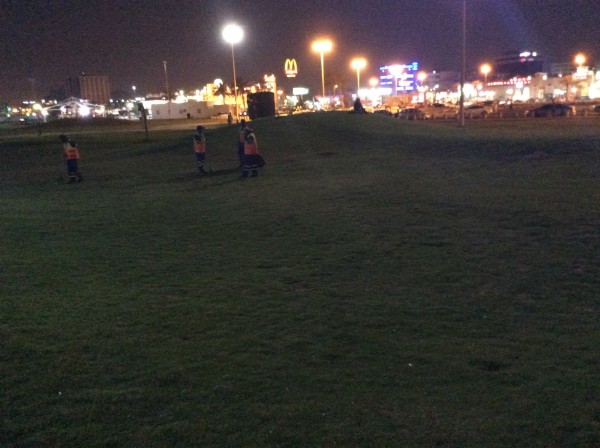 Hinter dieser Promenade gibt es auch Grünflächen auf denen gepicknickt wird. Die dicke, knubblige giftgrüne Rasenfläche sieht künstlich wie bei den Teletubbies aus. Sie wird von unten gewässert. Niederschlag gibt’s keinen. Im Winter ein Glas voll während des ganzen Monats.