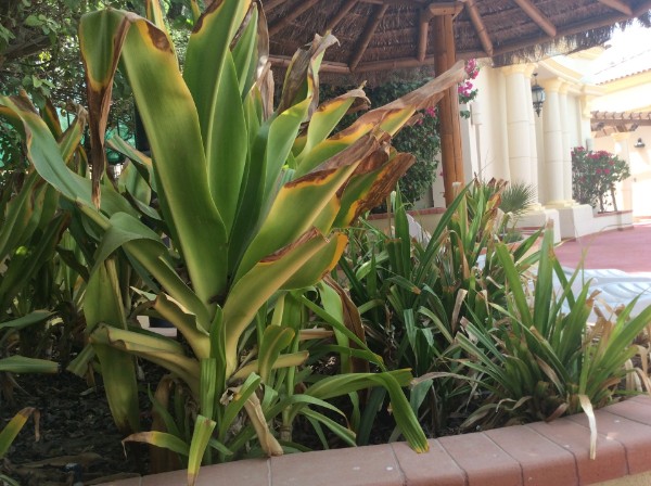 Alles ist frisch gestrichen, neue Bettdecken und Bezüge, neue Küchenutensilien. Und alles gereinigt, von Vorhängen bis Möbeln. Wirklich frisch und appetitlich. Aber diese Handwerksarbeiten müssen gemacht werden. Ächz. Dafür gibt es ein Büro und Telefonnummern und pro Tag sehe ich so an die 20 Männer, manche in blauer, manche in beiger Uniform im tätigen Einsatz. Viel hat es mit Bewässerung zu tun. Die Vegetation ist üppig. Dicke Bougainvillas, Palmen, Kleinsträucher, Rasenflächen. Wenn es nicht 44°C hätte, ein kleines Paradies. Einmal bin ich um 7 durch den Compound gegangen, um an der frichen Luft 33°C zu erleben. Ich hatte 33°C angenehmer in Erinnerung und was frischeres um 7 Uhr morgens erwartet.