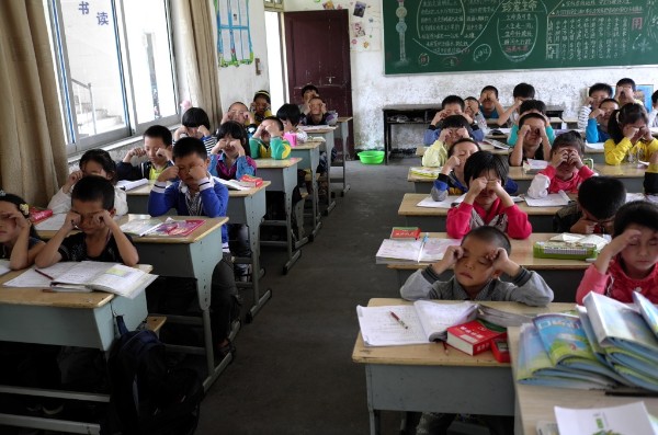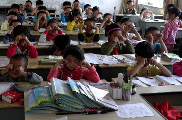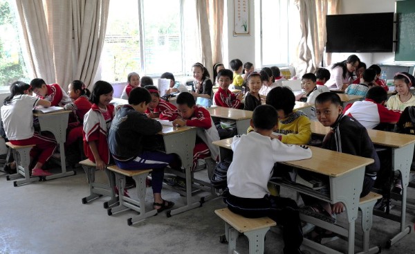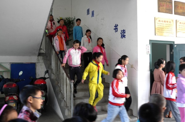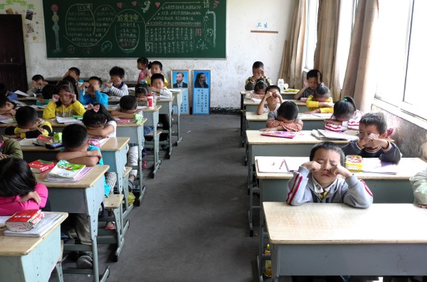 Ich kann sie unter der Fahne ablegen, denn gleich darauf geht’s weiter mit den Urkunden für die Dritt-, Zweit- und Ersten Plätze des Lesewettbewerbs. Es waren etwa 20 zu dem immer ein kleines Mädchen oder Junge gehörte, die ich beglückwünschte und sagte, dass Lesen das schönste auf der Welt sei. Danach gingen alle in ihre Klassenräume. Erste Stunde immer Chinesisch, dann Englisch und Mathe, 10 Minuten Pause zwischen jeder Stunde. Nach der zweiten Stunde Augen zu und Entspannungsmassage im Gesicht, jeder für sich selber. Zum Mittag fährt die Küchenmannschaft das Essen von Klasse zu Klasse, danach Kopf auf den Tisch und Schläfchen. Nachmittags Sport und Hausaufgaben.