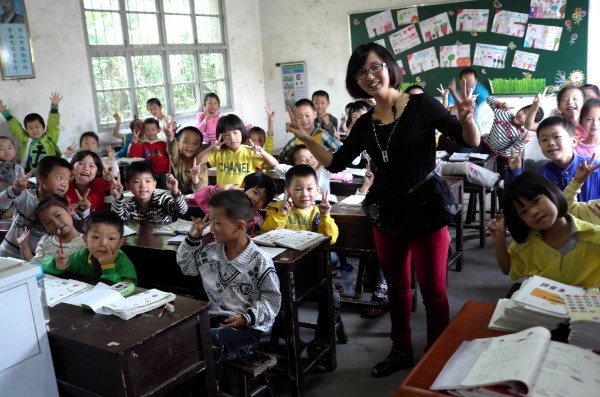 Wir werden von ihr zu einem Mittagessen in ein Restaurant eingeladen. Sie ist ungeheuer froh um diesen Termin durch den die Schule bekannter und vielleicht auch beliebter wird. Sie ist etwas außerhalb der Stadt gelegen. Viele Bauernkinder, die bis zu 2,5 km entfernt wohnen. Mitten im Grünen und gut an den Highway angebunden. Der Kulturchef und Photograph, Mr. Li will etwas für sie tun mit dieser Aktion.
