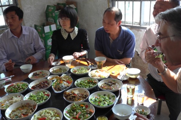 Bald geht es zum Lunch. Die Angler kommen nicht mit. Wir fahren zu dem Gemeindeverwaltungshaus zurück, an dem wir auf dem Hinweg vorbei fuhren. Herr Feng kennt den Chief. Trotz Sonntag müssen einige der 26 Beamten die Stellung halten. Eine Frau sagt, sie sind für 9 Gemeinden a 3000 Menschen zuständig. Sie fühlen sich sehr weit weg von aller Entwicklung und Fortschrittlichkeit.