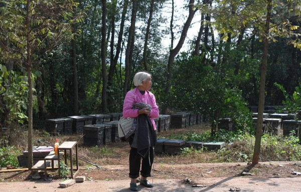 An der Strasse werden von einem älteren Paar, ein Bett und viele Kisten und Tonnen aufgestellt. Auf der anderen Straßenseite haben sie schon etwa 100 Bienenkästen verteilt. Sie sind in der Nacht mit den Bienenvölkern gekommen, weil an diesem Platz bestimmte Pflanzen jetzt gerade blühen. Sie müssen zügig seit Sonnenaufgang arbeiten, damit die Bienen nicht verhungern nach der langen Fahrt. Über dem Bett stellen sie ein Holzgestell auf über das dann eine Plane gelegt wird. Ich bedauere sie ein bisschen, aber dann erfahre ich, dass sie ein großes Haus in der Nähe besitzen.