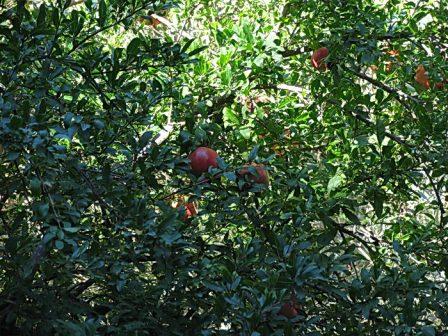 Schon vom Flughafen die Schnellstraße mit zum 2.?, 3.? mal, blühenden Rosensträuchern war so atemberaubend schön anzusehen. Aber dieser Anblick der rot changierenden Granatäpfel und die an bis zu 10m hohen Bäumen orangenen bis himbeerroten Khakis fühlt man sich wie in einem Märchenwald.